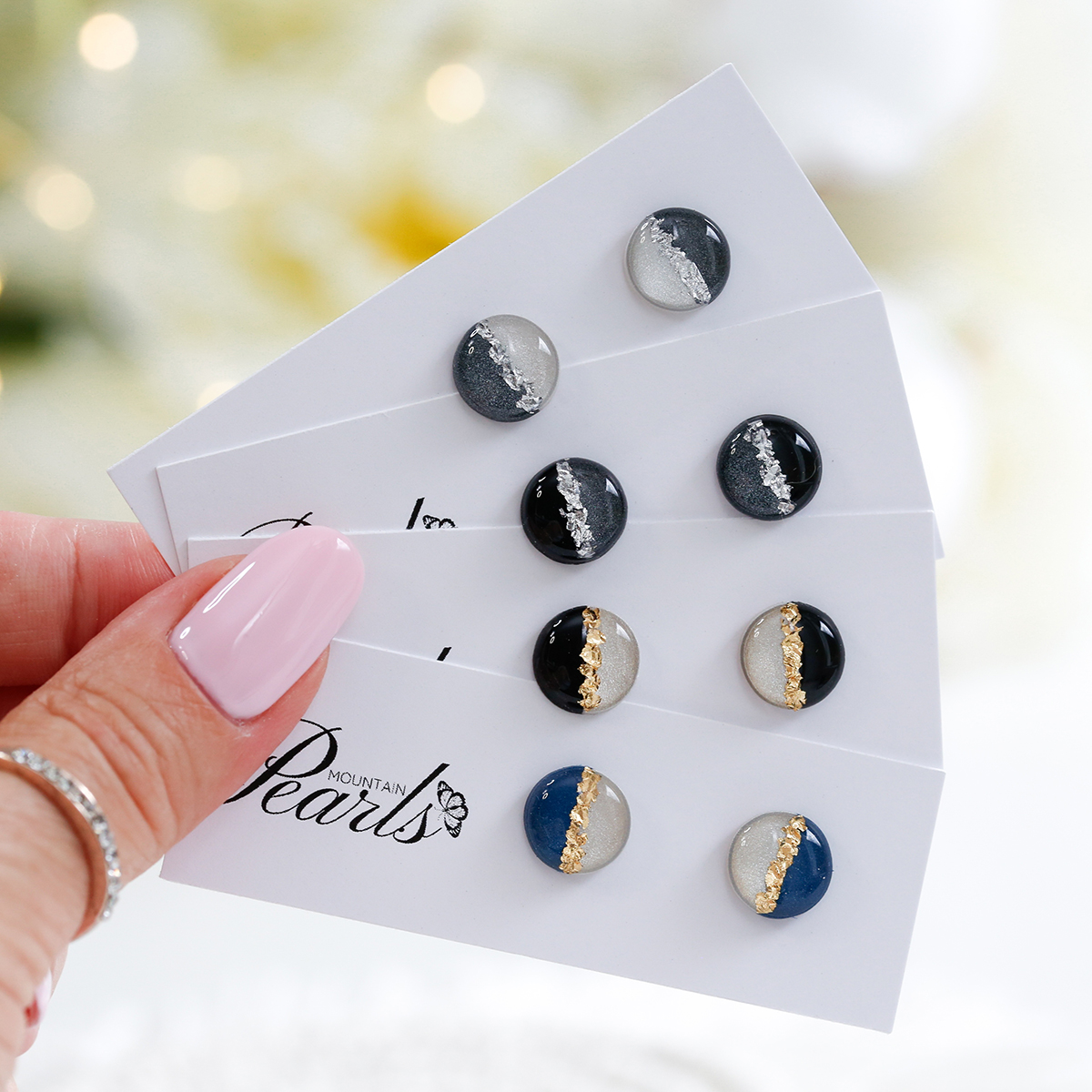 Izdelani so iz polimerne gline, dodane imajo zlate ali srebrne lističe in preliti so z umetno smolo.