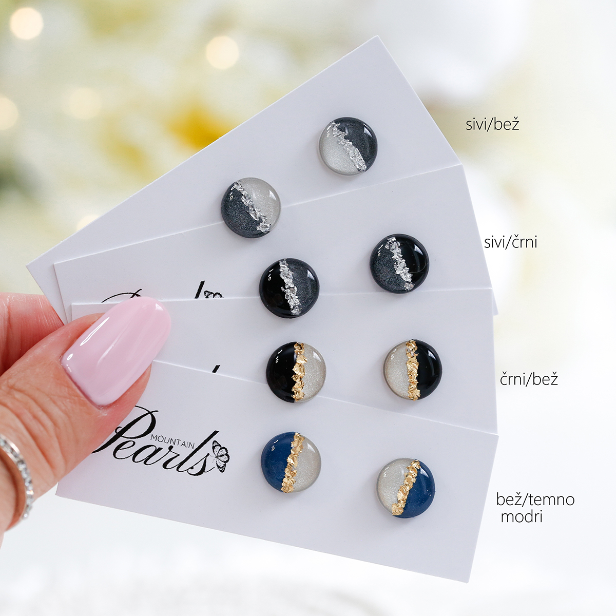 Mini dvobarvni okrogli uhančki Mountain Pearls – več barv.