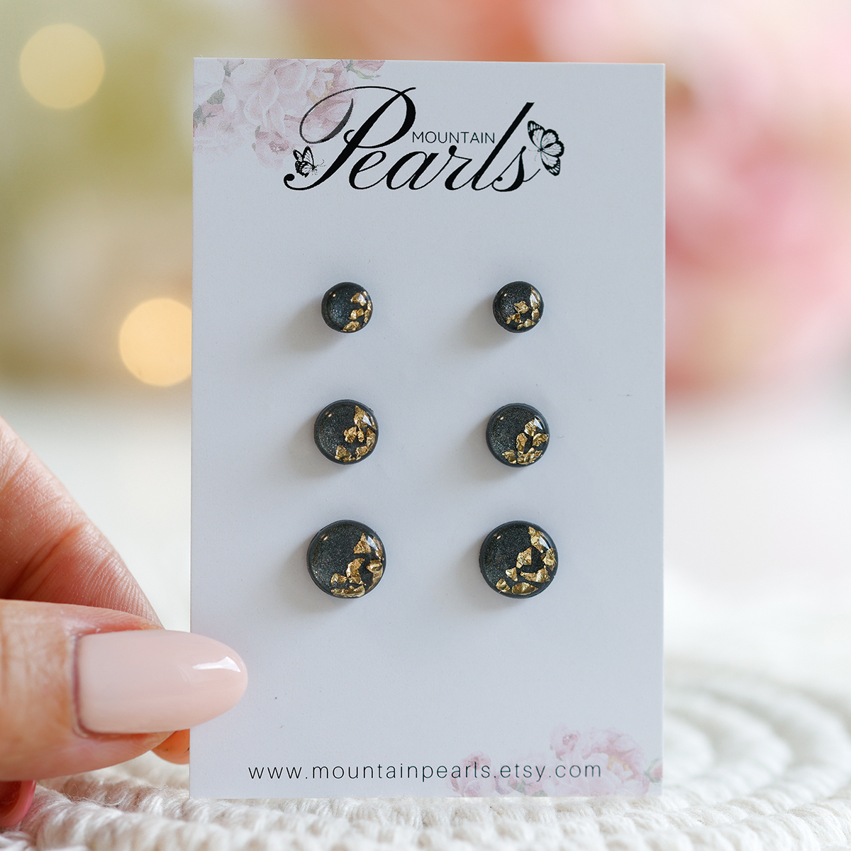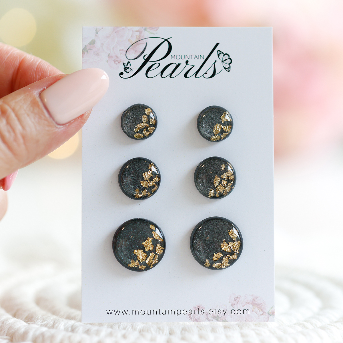 Ob naročilu v meniju določite velikost uhanov. Vsi kovinski deli, osnova in zaključek za uhane so iz plemenitega jekla, priloženi so tudi zatiči iz silikona.
