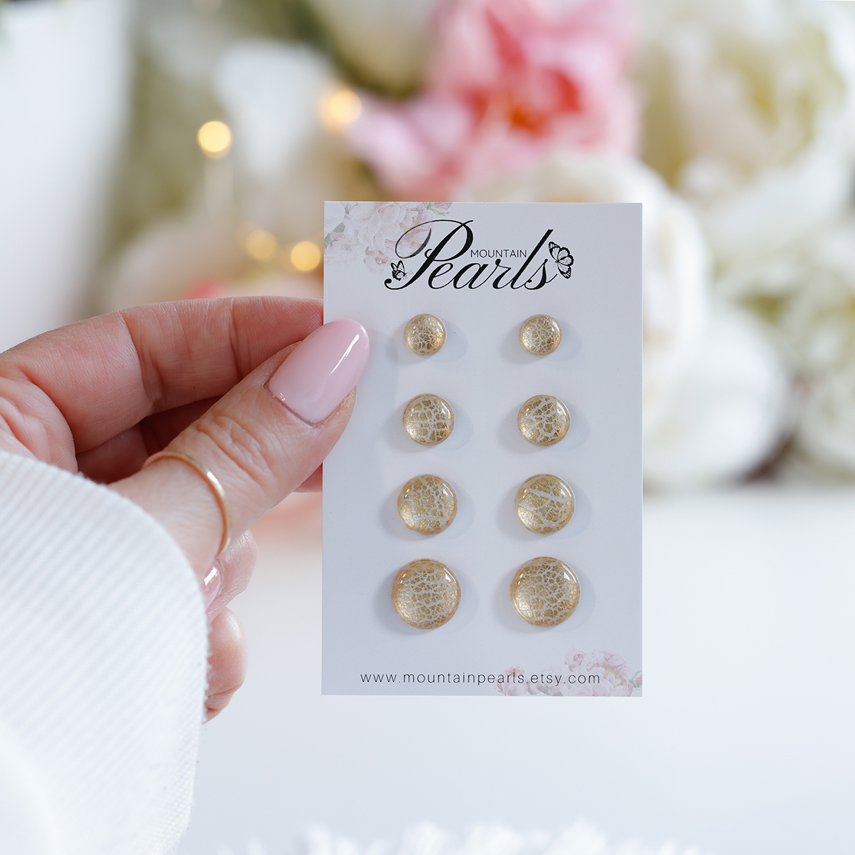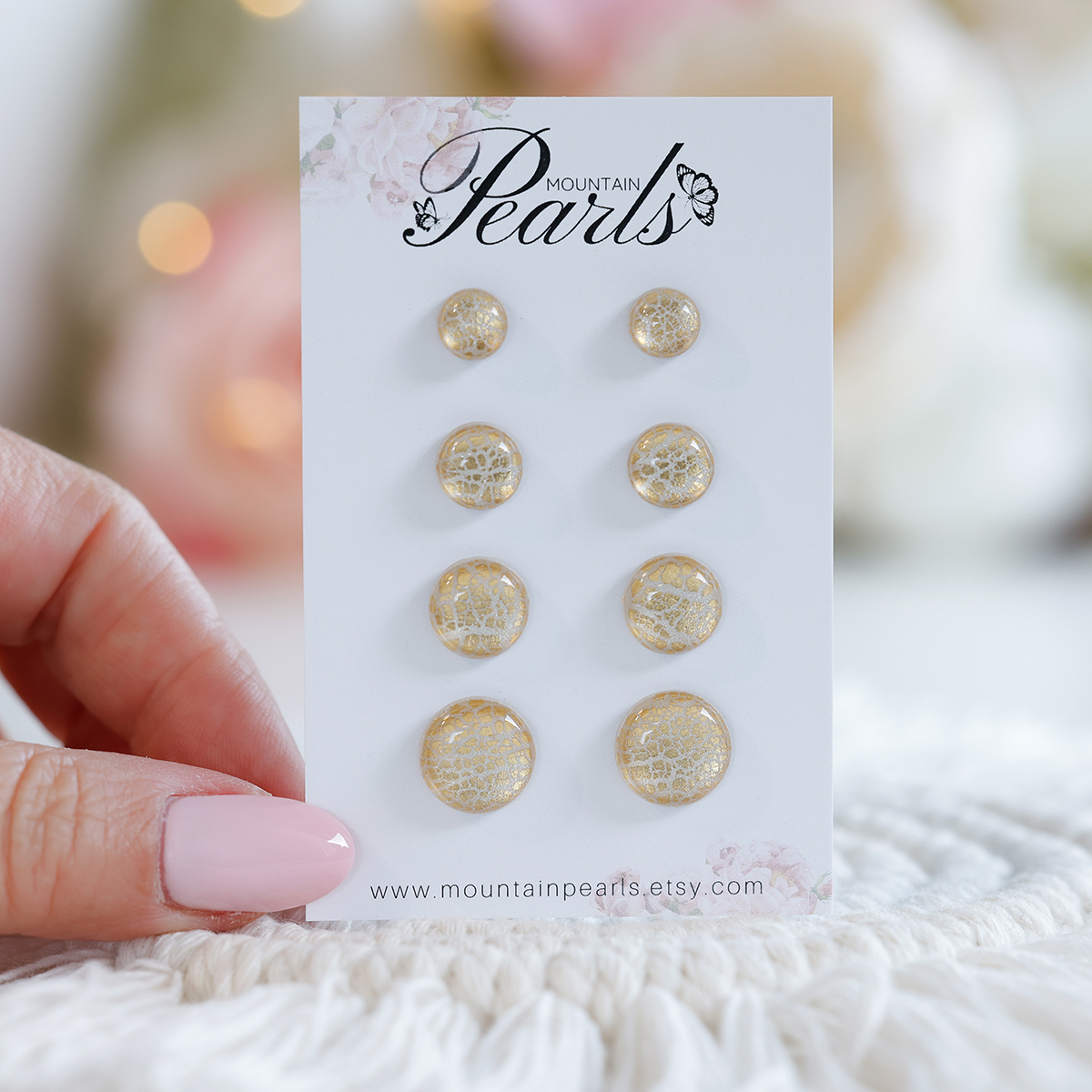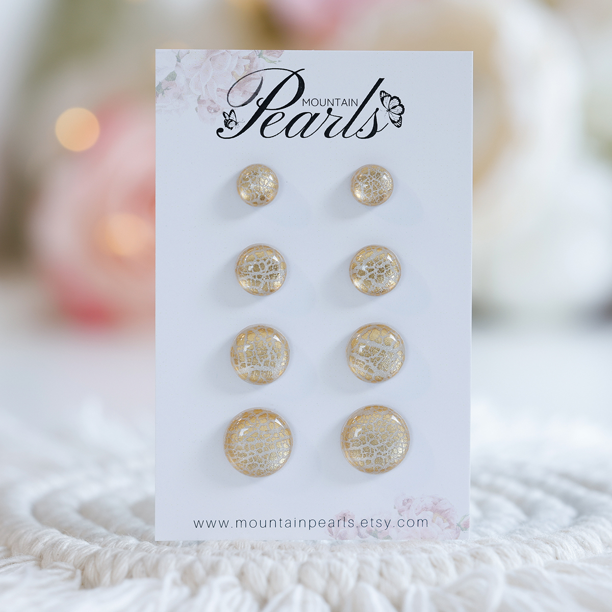 Mini unikatni uhani v zlati in bež barvi Mountain Pearls.