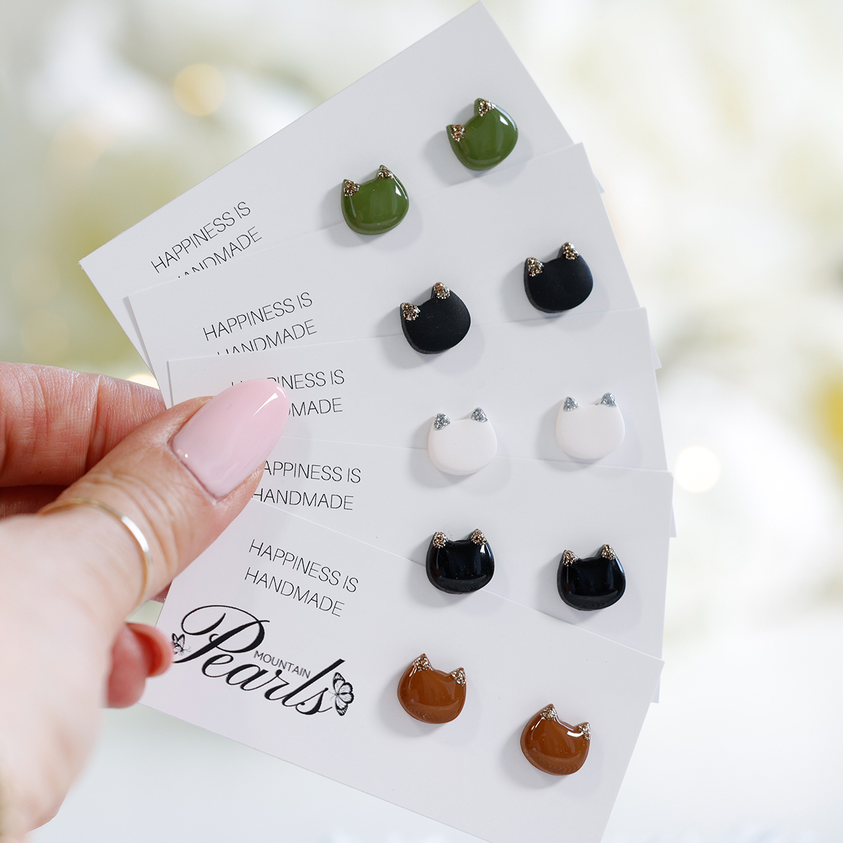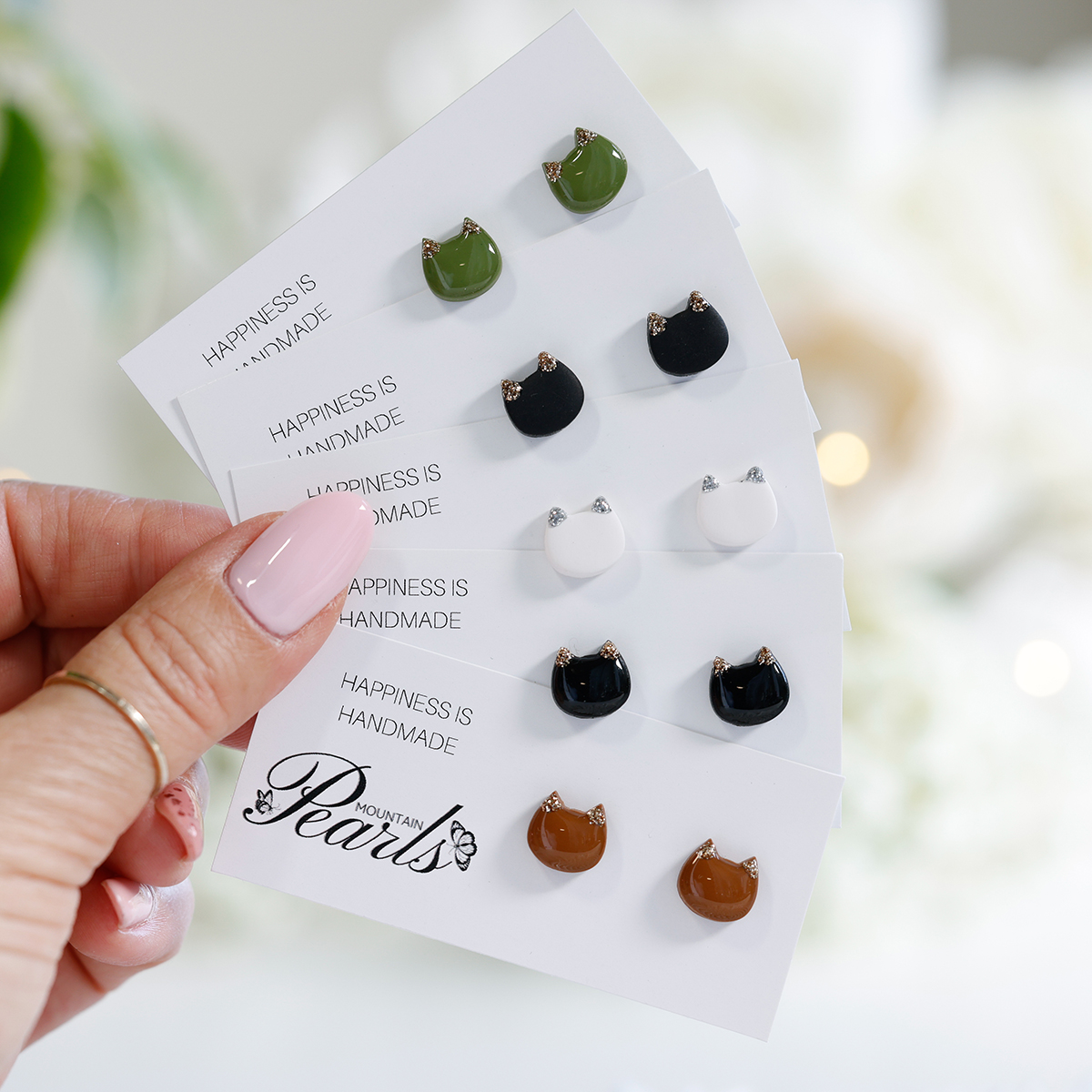 Simpatični neviseči uhani mucke so manjše velikosti, izdelane so iz polimerne gline, nekateri modeli so prekriti z umetno smolo. Na ušeskih so dodane bleščice.