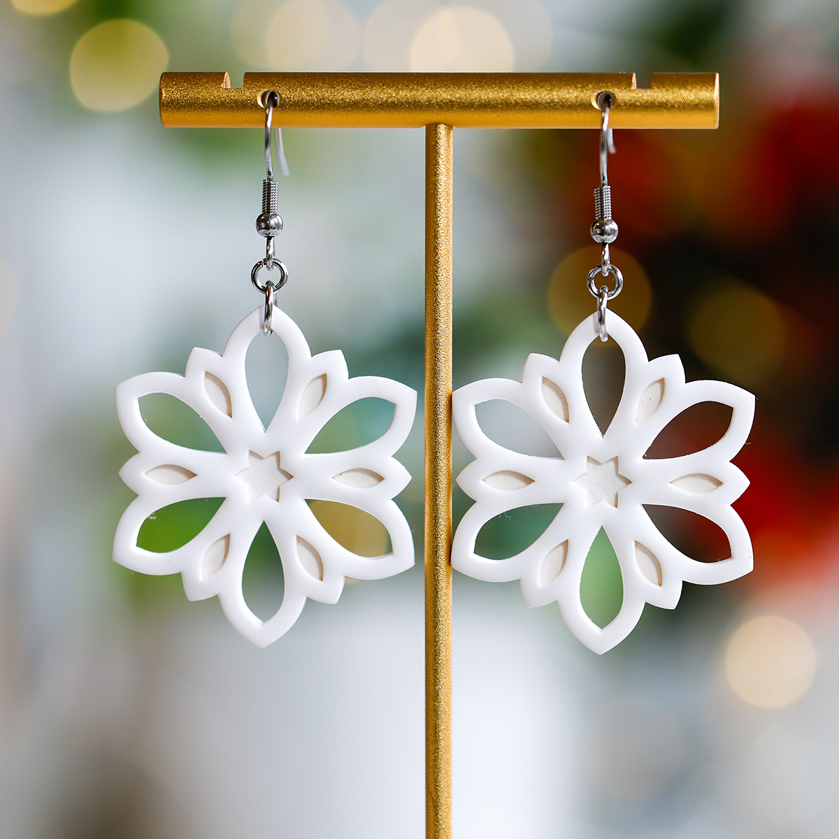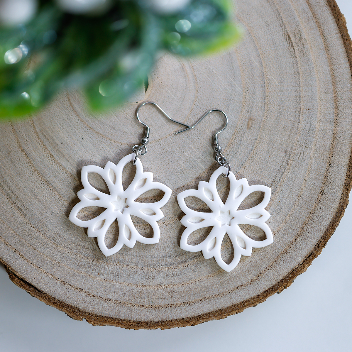 Unikatni uhani Snežinka v beli barvi – Mountain Pearls